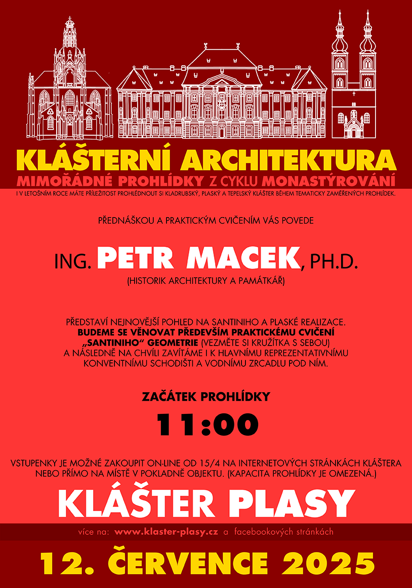 Začneme hodinou geometrie (kružítka, pravítko a tužku s sebou!), abychom se poté podívali ještě na praxi - na krátkou chvíli zavítáme k hlavnímu reprezentativnímu schodišti konventu a vodnímu zrcadlu pod ním.