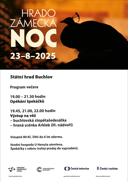 19.45, 21.00, 22.00 hodin – výstup na věž "buchlovská stopětašedesátka" + hraná scénka Arkleb