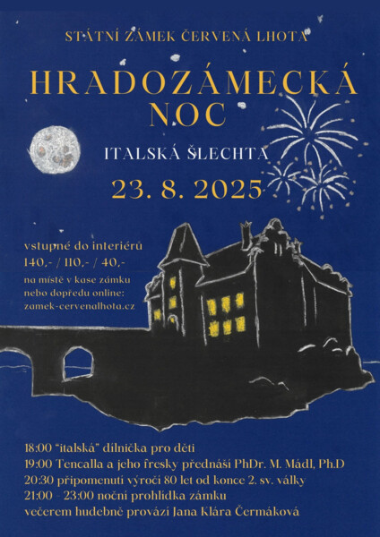 dovolte, abychom Vás srdečně pozvali na již každoročně pořádanou událost, kterou je Hradozámecká noc. Termín připadá na předposlední srpnovou sobotu, letos tedy na sobotu 23. 8. 2025.